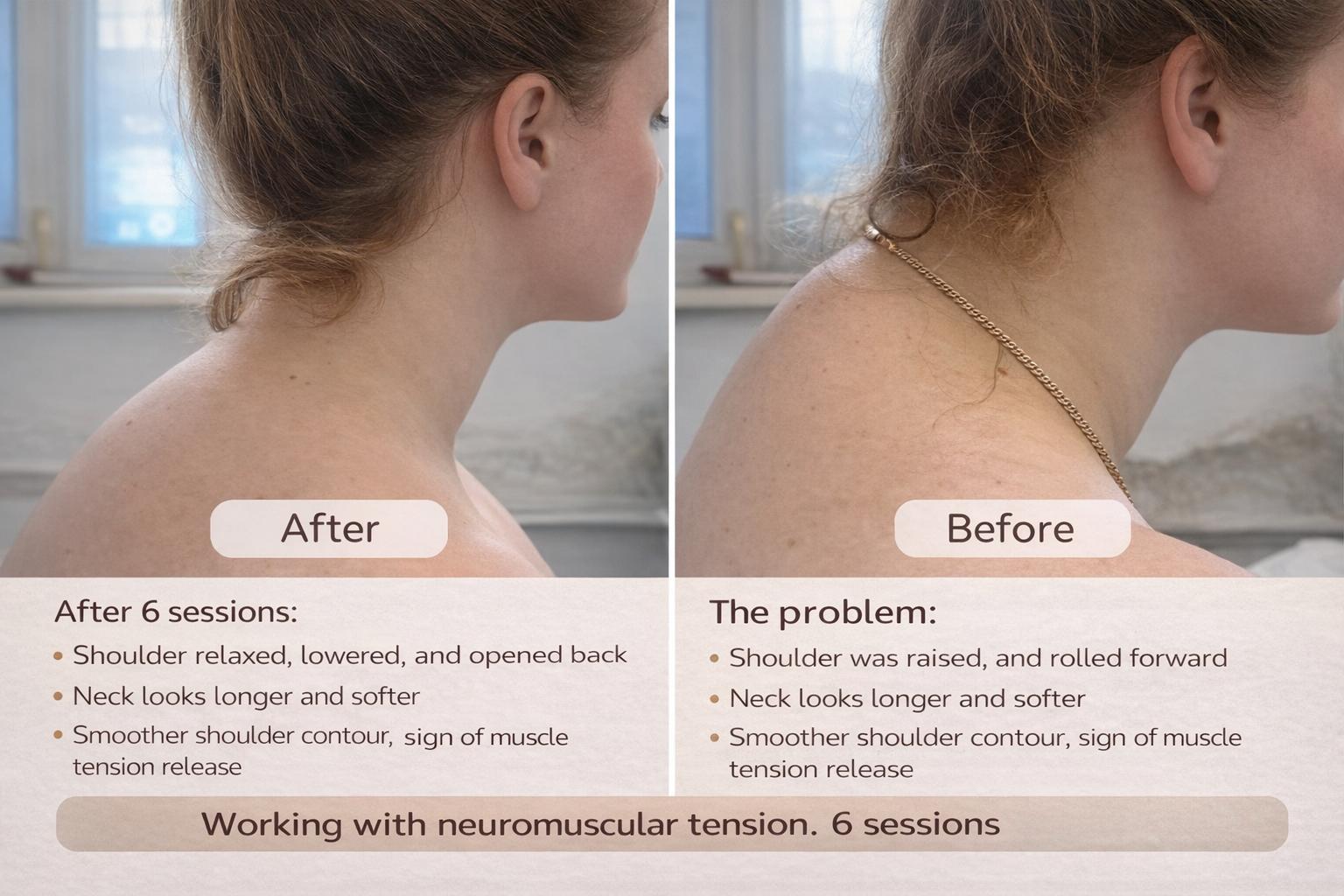 - Reduced tension in the neck, shoulders, and lower back
